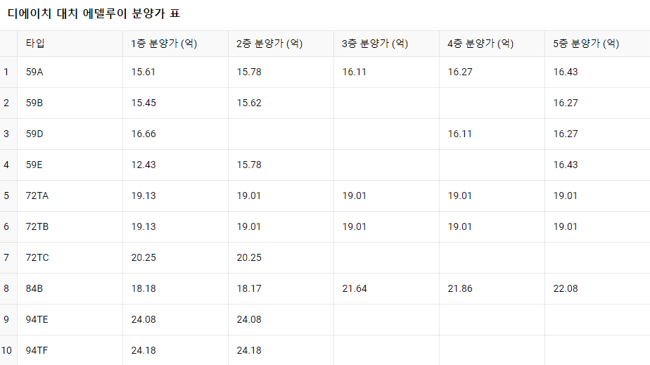 99년식 대치현대보다 싼 가격입니다. 그리고 21년도 입주한 대치르엘아파트보다는 5억이 싸게 분양됩니다.